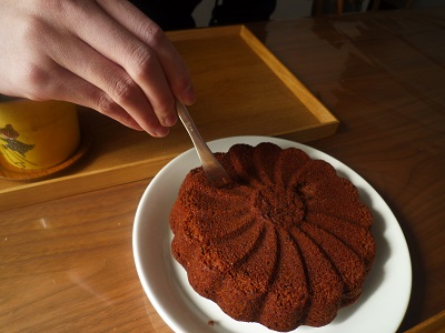 大人気なくフォークでいただきます。しっとりしていて美味しいです!