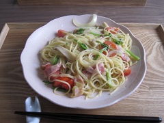 スパゲッティは好きなので実家でもよくつくります。ミニトマトをいれると味もしまるし彩りもキレイです。2-20.jpg
