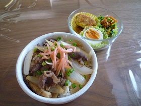 ①久しぶりに牛丼です。牛肉は冷凍していたので産地は不明です。