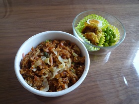 ①チャーハンの味付けのリクエストを聞いたら味噌ということで味噌チャーハンにしました。