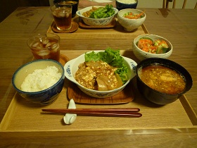 ①最近麻婆が完成されてきました。ポイントは酢とごま油とタマネギです。