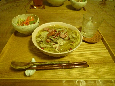 金曜日なのでニンニクたっぷりのスープスパ。汗をかきながらいただきましたー。