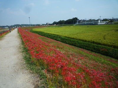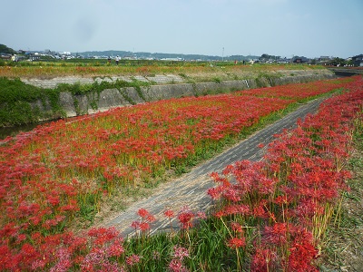 半田に行ったもう1つの理由は矢勝川の彼岸花を見に行くことです。一面彼岸花です。