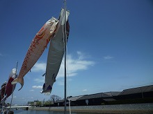 幸いにも、とても良い天気の青空の下、とっても元気に仲良くこいのぼりが泳いでいますね。