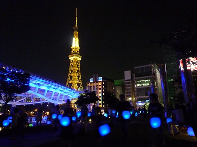 イベントにというのは Glow with City Project、あいちトリエンナーレのイベントです。建物と人とを光でシンクロさせるという総勢1000人で行う芸術プロジェクトです。今朝のラジオで紹介していて思い立っていくことにしました!
