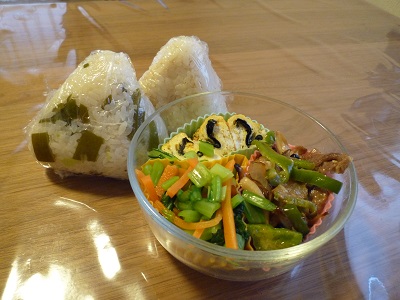主人の飲み会はだいたいおにぎりです。遅く帰っても荒いものは少ないし、持ち運びも楽だから。