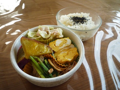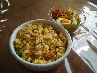 黄金チャーハンは玉子入り、さらにゆでたまごでたまご三昧のお弁当です。