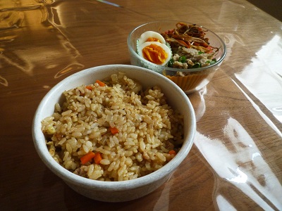 少しだけ残ったカレーを使ってチャーハンを作りました。