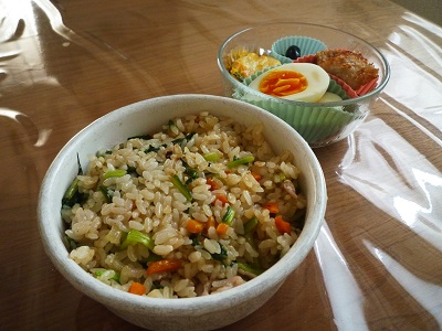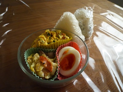 あまり残り物を使わないのですが、昨夜のナポリタンをいれてみました。