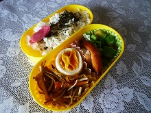 きんぴらごぼうとカジキの照り焼きが同じ味付けになってしまったけど弟は気にしません。