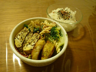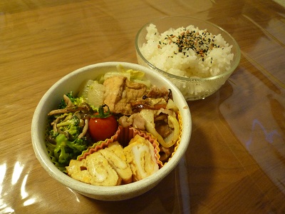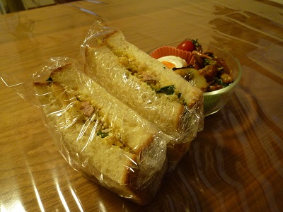 今週は祝日をはさんだのでお弁当は4回です。2月14日はお弁当3周年記念です。普段リクエストしない夫に無理やり好きなメニューを聞いて作りました。すると、サンドイッチと。わたしのサンドイッチはコツを喫茶店バイトで教えてもらったので、自信作です。パンは焼きたてはきりにくいので、焼いて翌日のパンを使います。