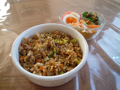 13日恒例のオムライスです。お弁当に豪華だと主人は満足。
