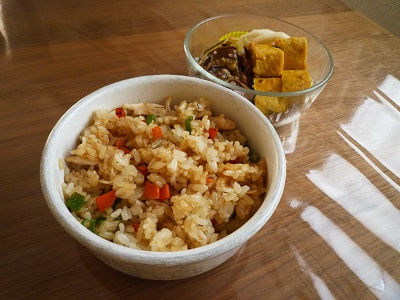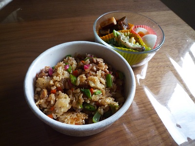 大根菜を塩麹につけたものをごはんにまぜるだけ。煎ったゴマが味のポイント!