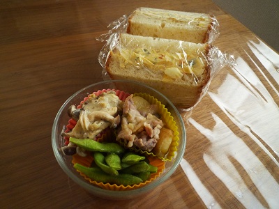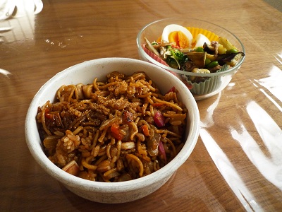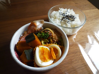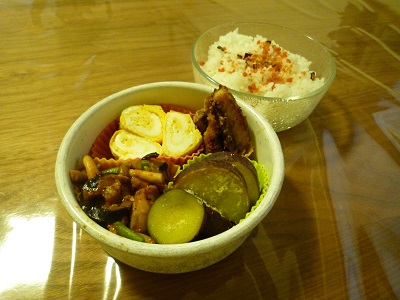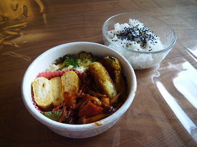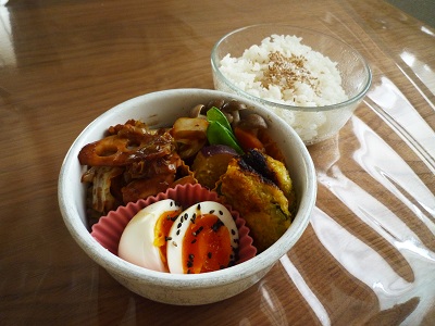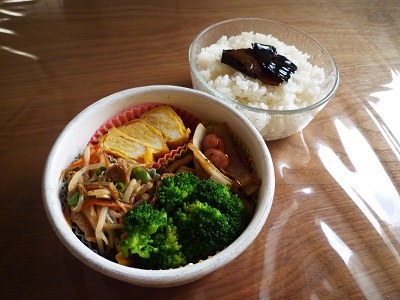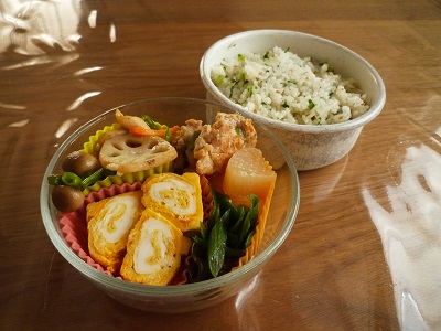 今週のお弁当。忙しいのに良く作ったと褒めます。