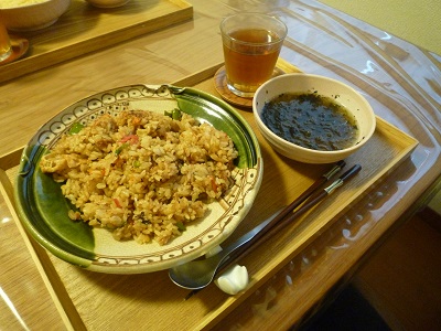 鯖の味噌煮を使ったチャーハン。今回は味噌のたれが多くて、チャーハンにいれました。ショウガが利いていておいしい。