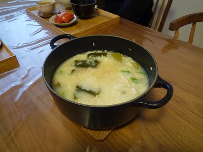 先日焼肉に行ったときにサムゲタンが美味しかったので、鶏肉(もも・手羽元)を入れたおじやをつくりました。