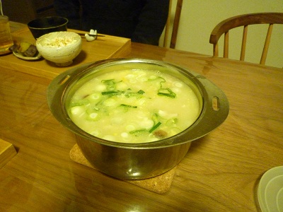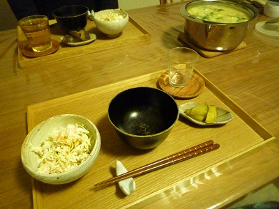 昨日はお酒を飲んだので味噌汁とかが美味しい。主人の好きな赤味噌で。