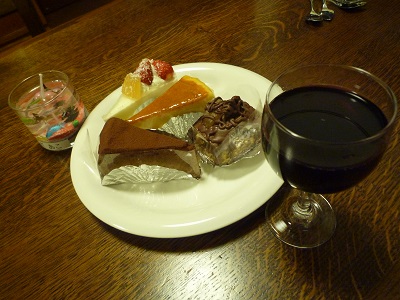 ・ケーキは赤ワインと。