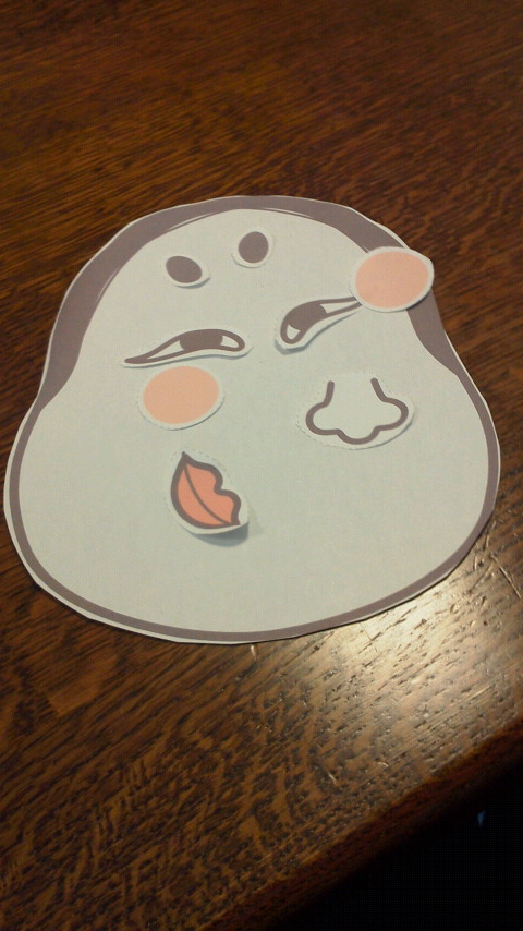 今年はみんなで福笑い。意外と可愛くできたもんだ。口が縦になっています。