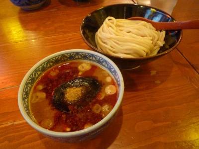 お店にいた何組(男の人)かも食べていたけれど、話題性を考慮して無理をして食べていた感じ。無理をして食べてもかっこ悪いだけなのにななんて主人と話していました。そんな主人はノーマルなつけ麺をいただきました。やっぱり東京のつけ麺は最高だな。