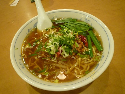 さっぱり醤油ラーメンの上にひき肉が乗っているスタイルです。初めて食べたけれどすごく辛くてすごく美味しい!