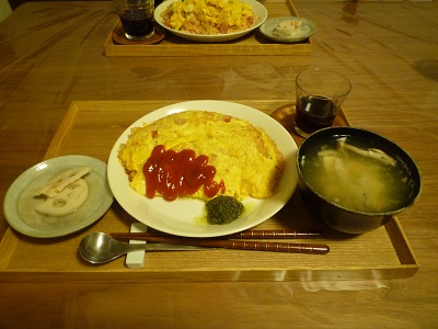 オムライスは意外と食器類を使うので平日に作るのはとっても大変なんです。今日はお休みなのでつくりました。