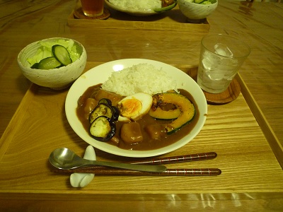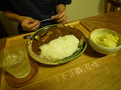 この日は歯医者さんで帰りが遅くなりました。わたしはいなばのグリーンカレー。なすを足しました。