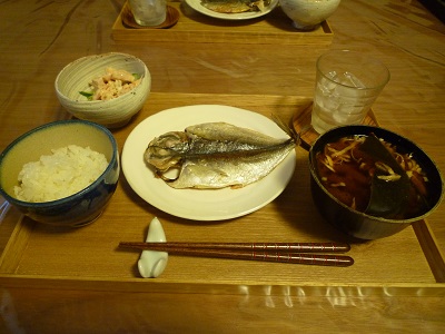 この日は暑さのためか食欲なし。ということでお味噌汁ごはん!もちろん主人には魚を焼きました。