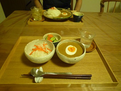 火曜日は帰りが少し遅いので、お決まりのすぐできるメニューです。冷蔵庫に残っていたカボチャをたくさん入れたので、とっても甘いパンプキンカレーになりました。ひき肉がとっても美味しいです。