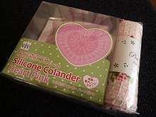 このシリコンざる、以前東急ハンズの街頭販売で魅入った一品です。彼と一緒に居たら「そこのカップル、さっきから見ていないで買いなさいよね!!」とおっちゃんに言われたものでした。いただいたのはハートの形☆可愛すぎます。シリコンだから食器洗浄機も入れられるから嬉しいです。