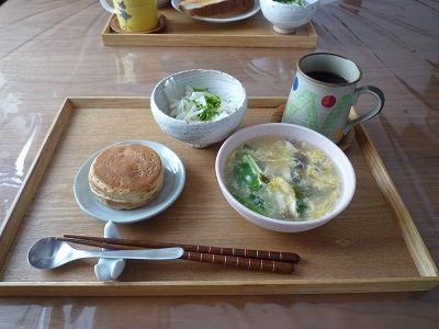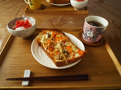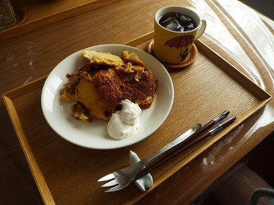 ということでお昼は大判焼き。主人は食パンもつけました。大判焼きは御座候。わたしは白あん好き、主人は赤あんです。
