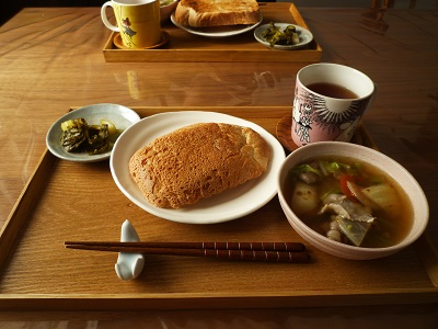 今日は欧米の朝食かのようなメニューです。のんびりおしゃべりしながら食べるのが美味しいの。