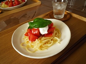 ・トマトの冷静パスタ~水切りヨーグルト添え~