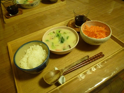 昨日からルクルーゼで煮込んだシチューは、とろとろでおいしいのなんの。野菜の甘さが引き立ちます。
