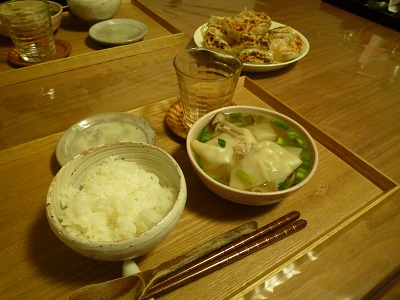 餃子でお腹いっぱいになりたいので、汁物は水餃子です。成城石井の皮は焼いても煮てもおいしー。