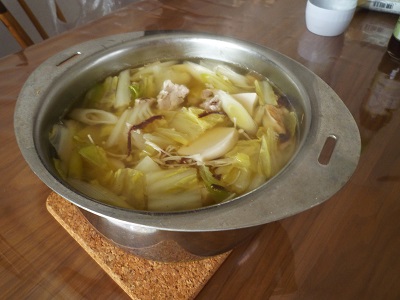 ということでお昼は鍋にしました。白菜はくたくたになるまで煮込んで、鶏つくねと鶏肉をダブルで入れています。