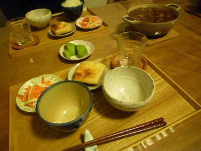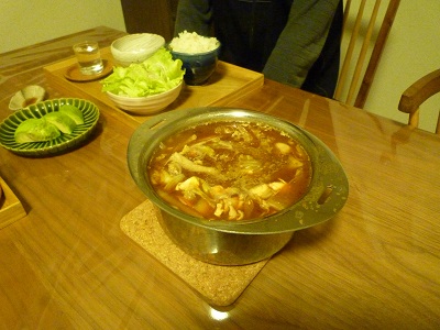 冷蔵庫にあるものを使って味噌鍋。赤味噌の鍋は主人と結婚してから作るようになった鍋です。今日のお肉は鶏肉。