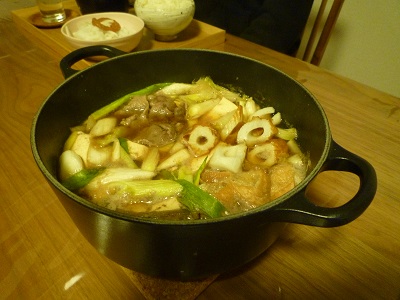少しだけあった牛肉を使って、すき焼き風の鍋を作りました。とろとろねぎが美味しいの。