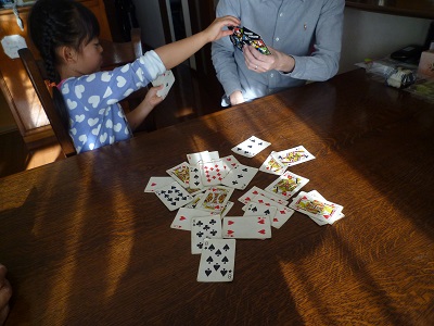 2年生の姪が帰ってきて、主人・姪・祖母・母・わたしの5人でトランプをしました。
