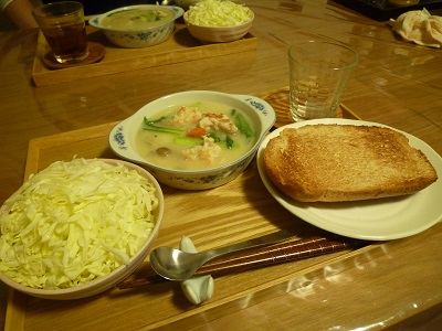 お出かけする前に大体ごはんは作って行きます。偶然にも鍋にて大正解!