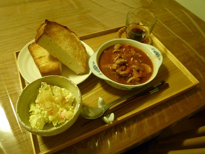 ということで、今日は主人の希望でトーストにしました。パンに良く合う素敵な夕食になりました。