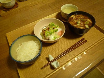 ・味噌汁(赤味噌・油麩・ねぎ・しめじ)