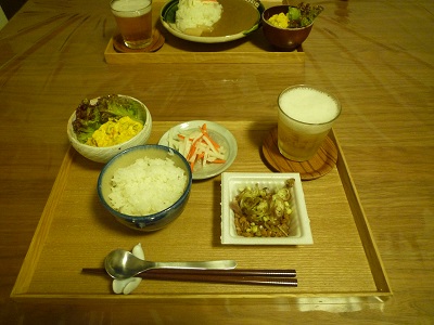 ココナッツりんごカレーがあと1人分だけだったので、カレー大好き主人の夕食に。わたしは1パックだけ残っていた納豆ごはんにしました。
