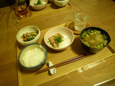 贅沢納豆とは、納豆に温泉玉子などボリュームあるものをいれていただくこと。主人はごはん3杯食べていました。「ひつまぶし」風として3杯とか言っています。豚肉がメインではないのが我が家です。