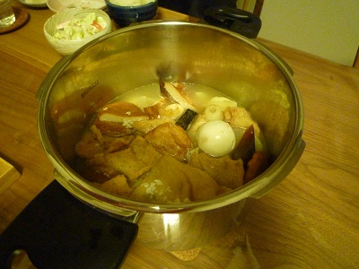 ジャガイモは圧力釜でふかしたので見た目は固いのにほっこりほくほくです。大根はお米のとぎ汁で煮たのであじがしみしみです。