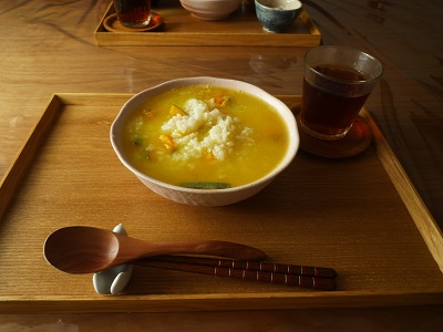 胃の調子がすっきりしないときはおかゆさんを食べます。宿儺かぼちゃが甘くて美味しかった。