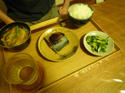 食欲があまりないときは味噌汁ごはん。なす・いんげんをいれていただきます。
