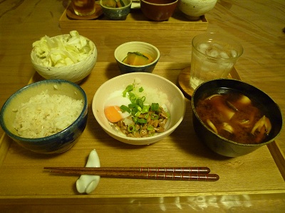 いつの間にかこんなに食材が並んでしました。それも野菜ばかり。主人には納豆の代わりにアジの開きをだしました。