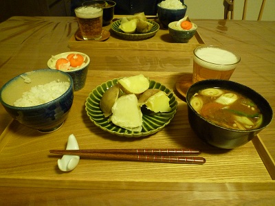 家に塩辛があったので、ふかしたじゃがいもにのせていただきました。じゃがいもはだんしゃくと北あかりの2種類です。