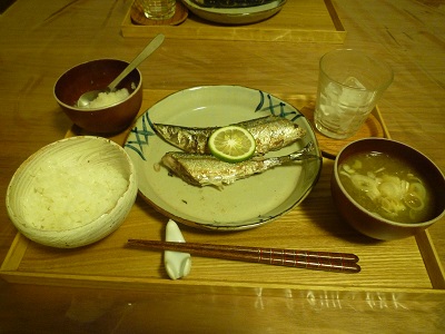 主人が大好きなさんまです。とにかくさんまが大好きで、この時期はテーションが上がっています。初さんまは脂がのっていてとっても美味しかったです。付け合せの大根おろし・かぼすもウマウマでした。秋は美味しいものがいっぱいですね。嬉しいです。
